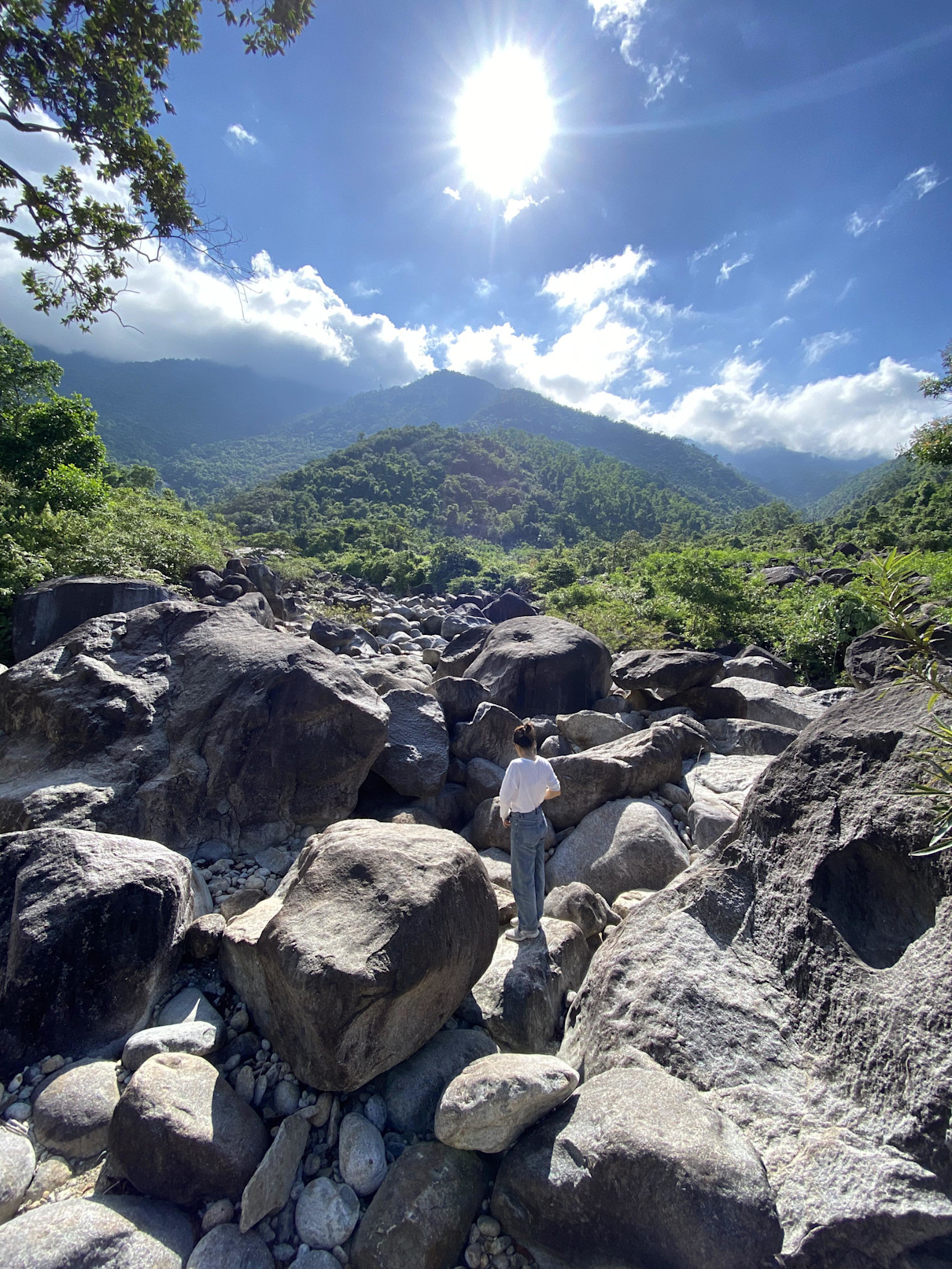 Descending from the Bach Ma Mountain Range, you'll encounter numerous beautiful waterfalls and clear streams. Since we had been there before, we didn't make a stop, but I suggest you visit one of the waterfalls such as Nhi Ho Waterfall, TiĂȘn Stream, Elephant Stream, and my personal favorite, MÆĄ Waterfall. Although I can't provide detailed information about each waterfall, I can give you an overview. The streams and waterfalls here have a distinctive feature: local people have developed tourism by setting up temporary stalls along the stream banks to serve food and beverages. Overall, cleanliness and hygiene are well-maintained, and the services are reasonably priced. Taking a refreshing dip in the stream, resting at the stalls, enjoying some beer and grilled chicken that are readily prepared can make for an enjoyable plan. If you want to get closer to nature, you can climb over the rock along the stream, the higher you go the scenery more becoming beautiful and fresh.